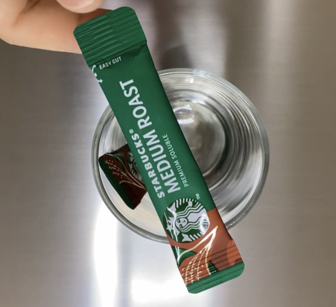 - 스틱커피 2개 (저는 스타벅스를 사용했어요. 일리 커피를 좋아하지만, 집에 있는 거 아무거나 OK!)